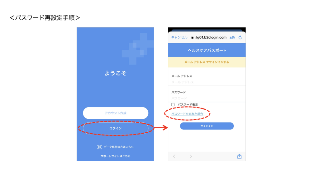 パスワードを忘れた場合は、パスワードの再設定をすることができます。